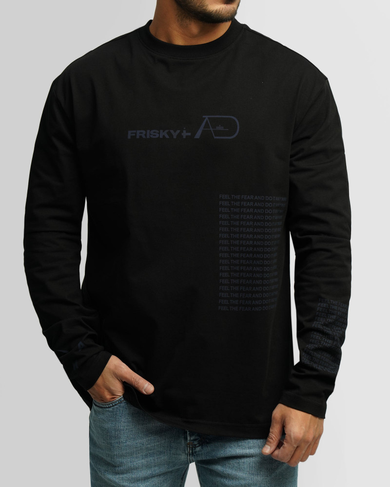 تیشرت آستین بلند یقه گرد طرح دار، با پارچه نخ پنبه، شیک و اسپرت