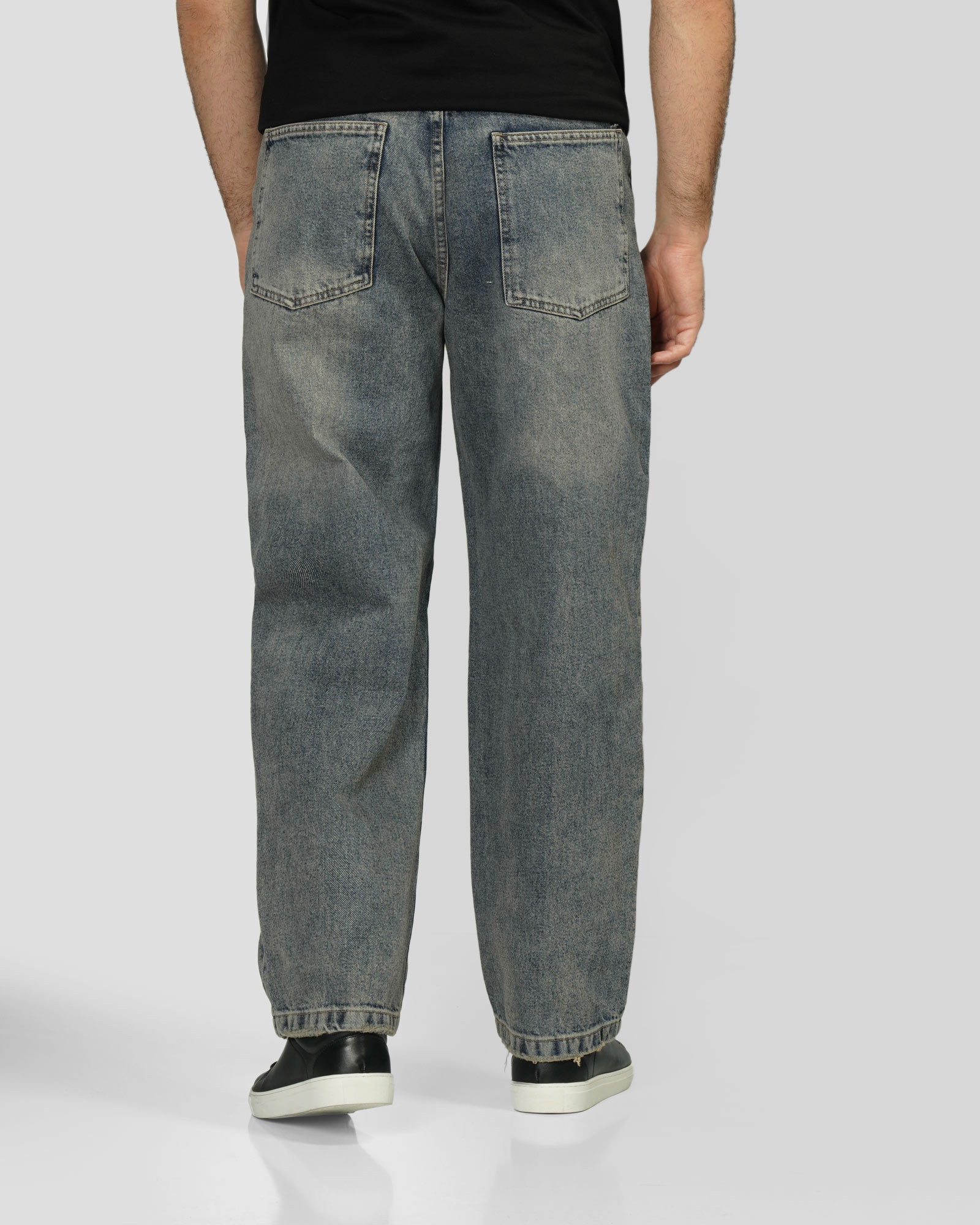 شلوار جین بگ (Baggy) ساده مردانه، با پارچه پنبه، برش آزاد، فاق متوسط و زیپ دار، شیک و اسپرت