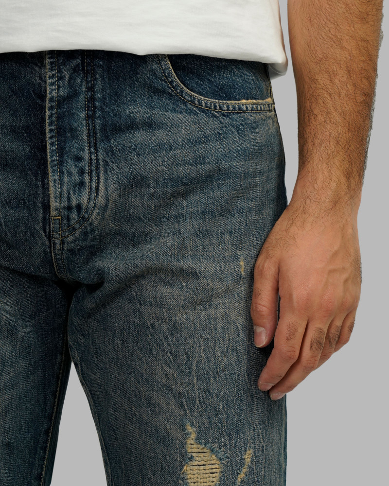 شلوار جین ریلکس فیت (Relax fit) زاپ دار مردانه، با پارچه پنبه و فاق متوسط، دکمه دار، شیک و اسپرت