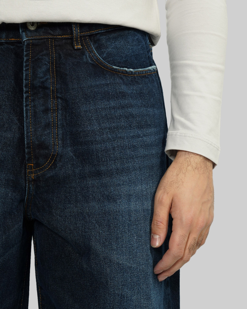 شلوار جین واید لگ (Wide leg) ساده مردانه، با پارچه پنبه، فاق متوسط و دکمه دار، شیک و با کیفیت