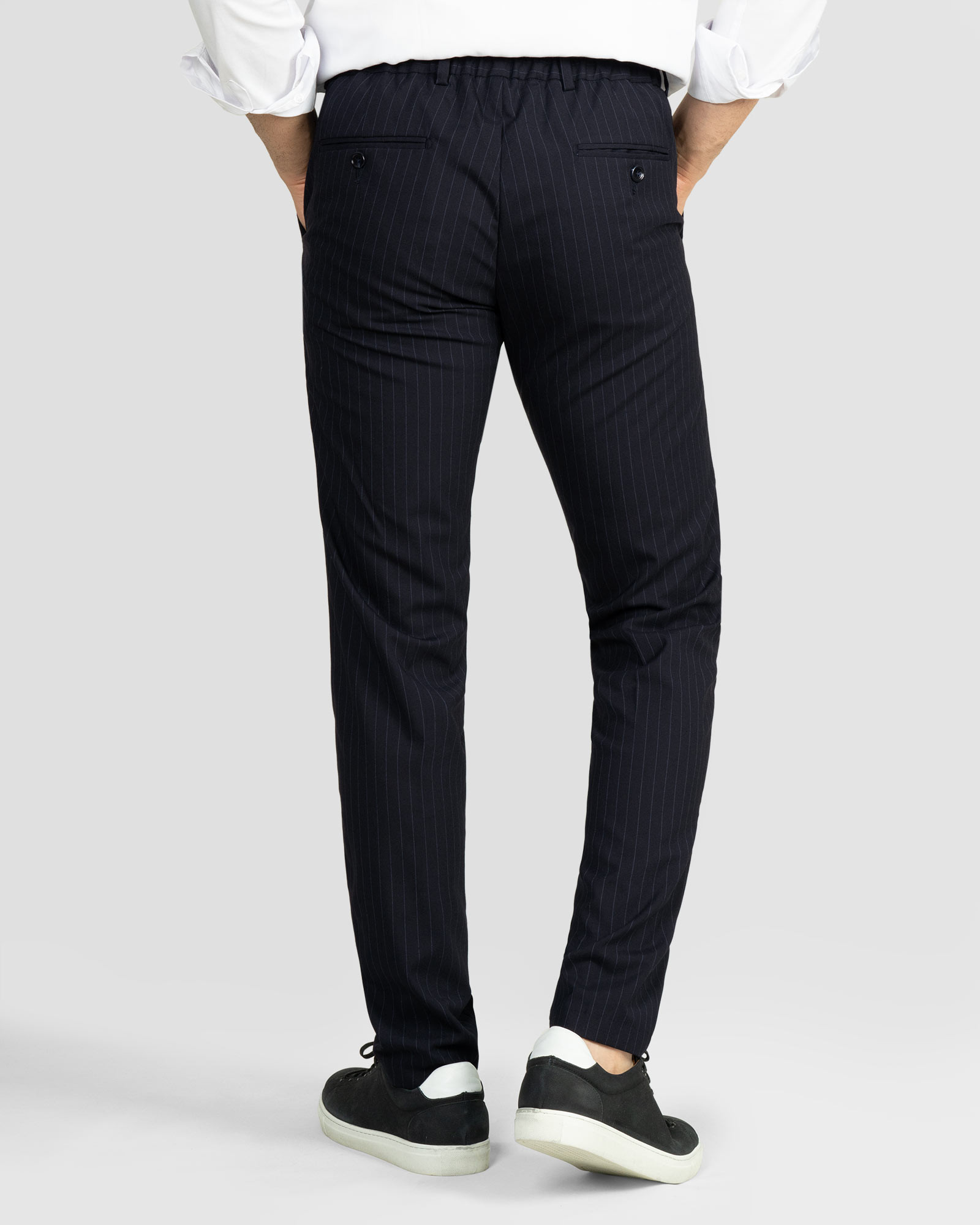 شلوار پارچه‌ای مردانه، با برش جذب (slim)، فاق متوسط و کمرکشی دارای دو جیب کناری و دو جیب پشتی