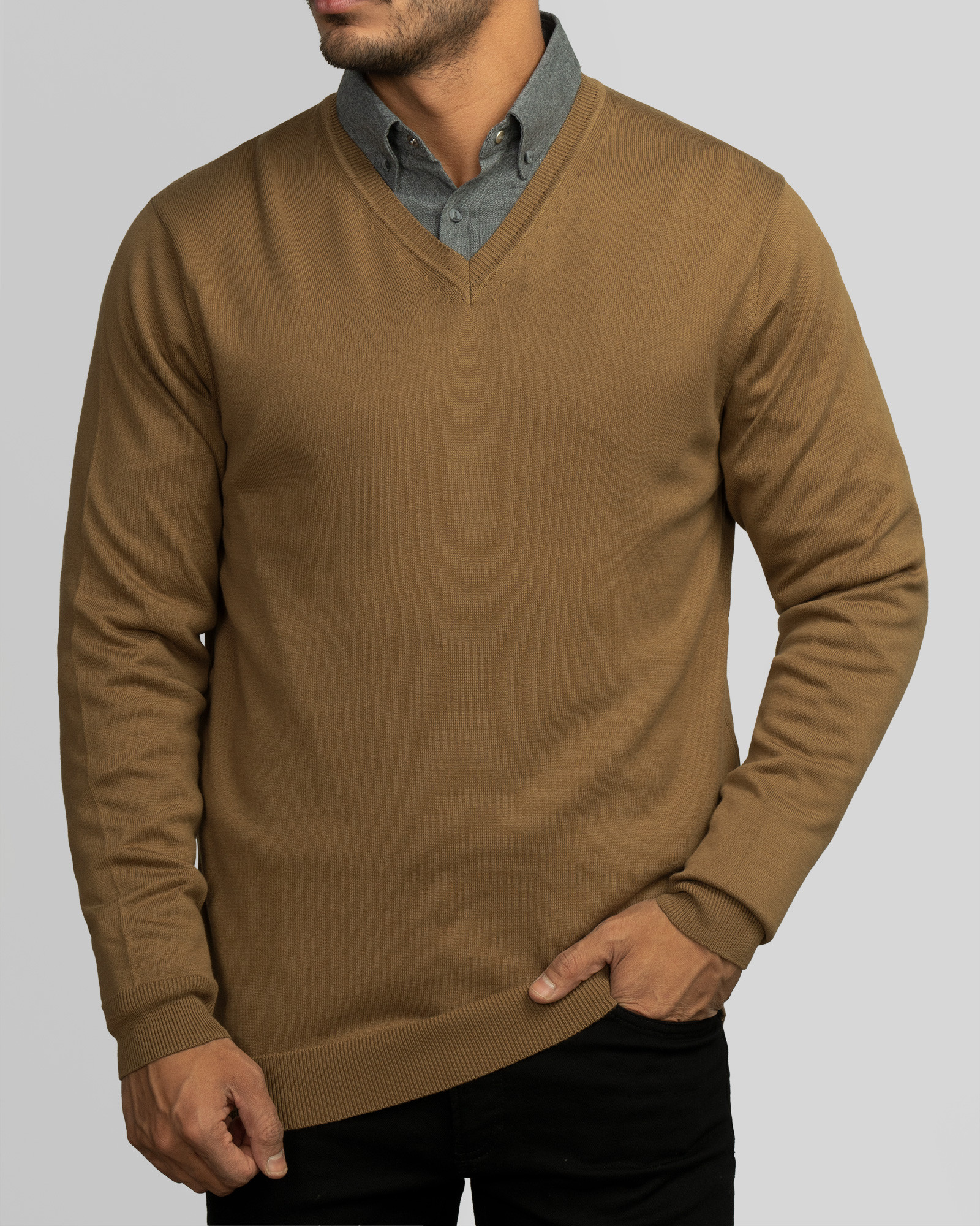 پلیور بافت یقه هفت ساده، پارچه سبک نیمه ضخیم، شیک و اسپرت
