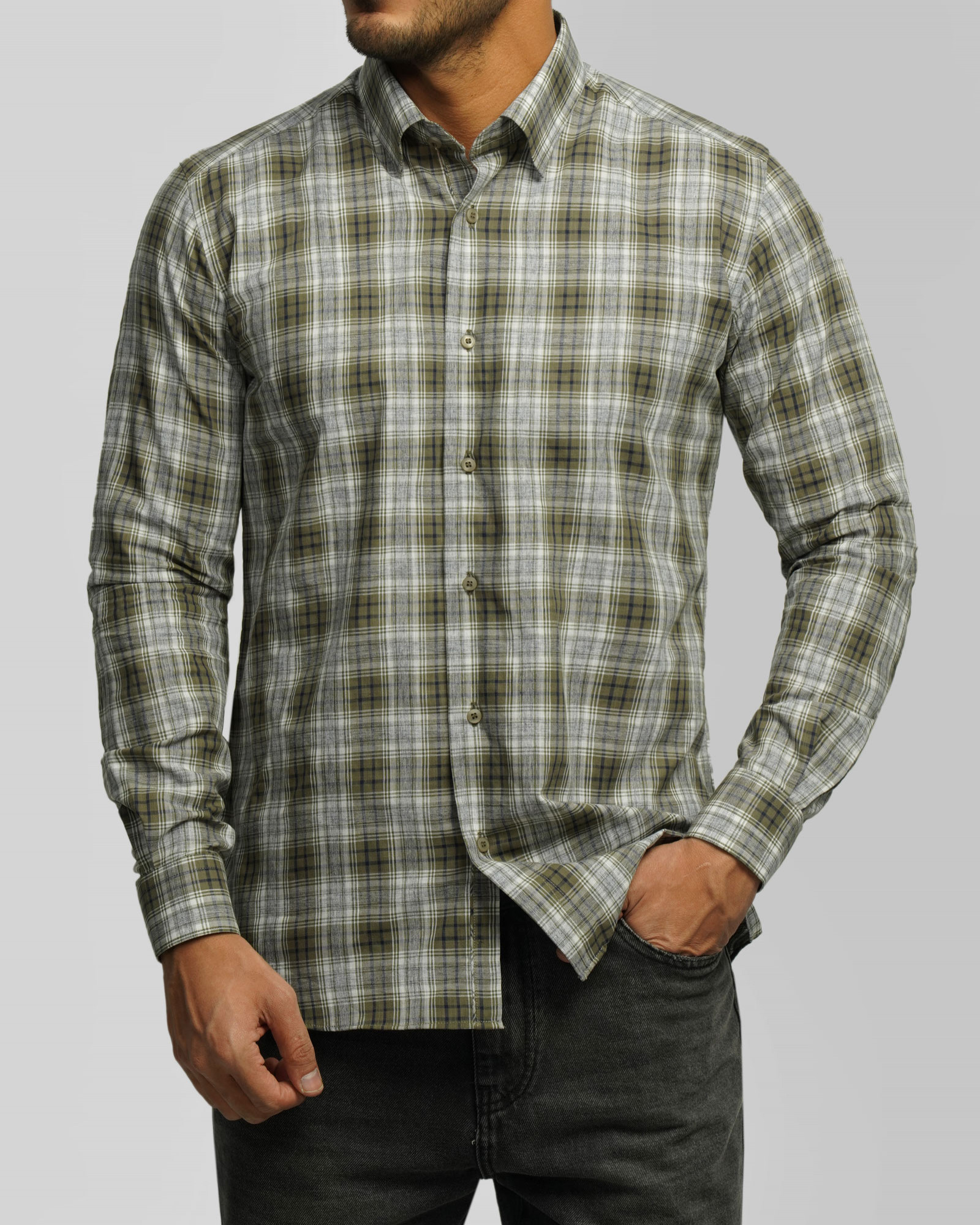 پیراهن آستین بلند چهارخانه مردانه، با برش معمولی، بدون جیب، شیک و با کیفیت