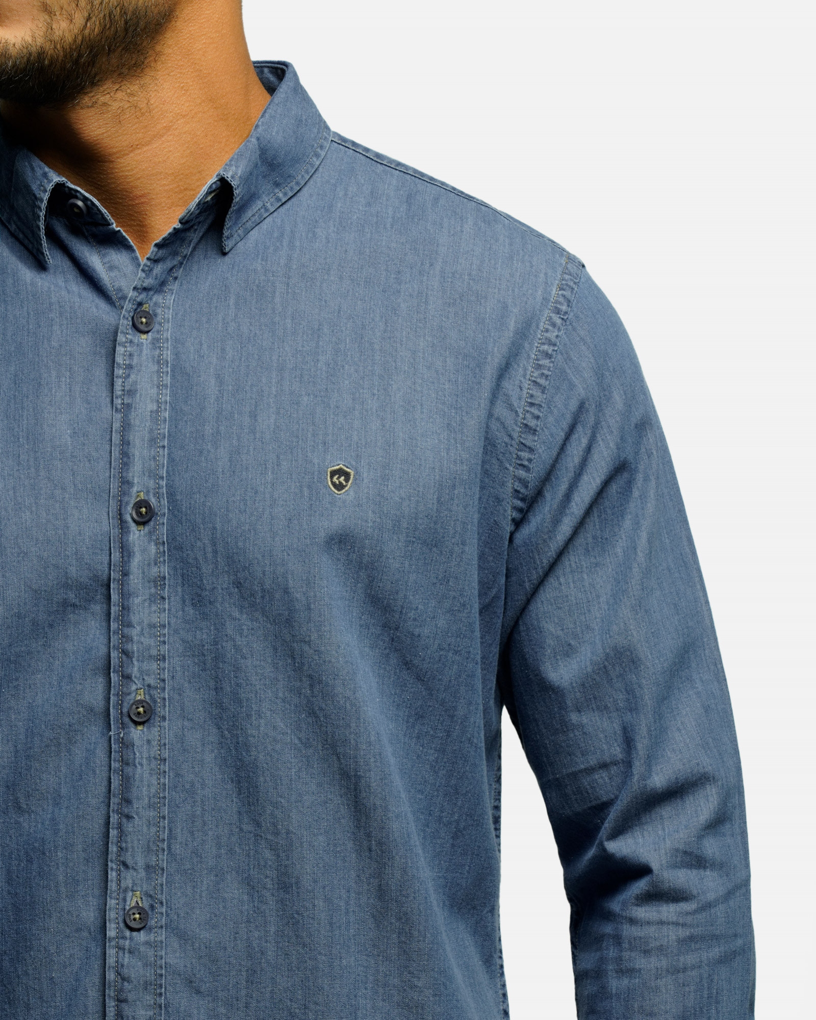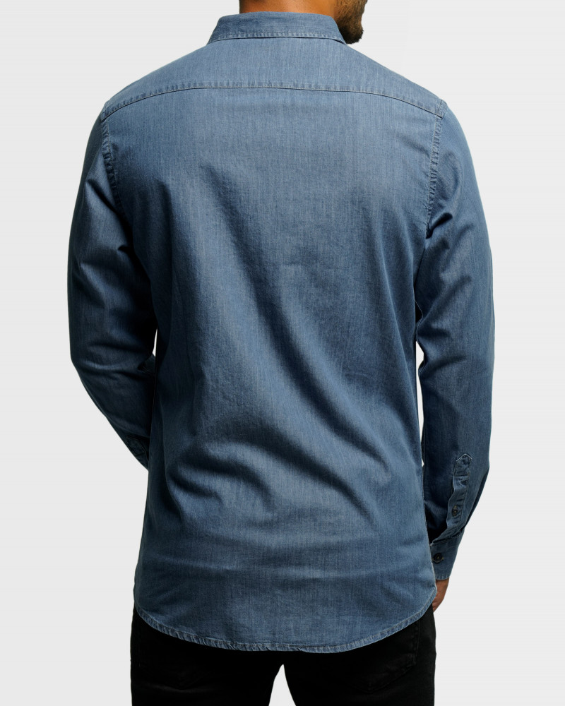 پیراهن جین آستین بلند ساده، با برش معمولی، بدون جیب، شیک و اسپرت