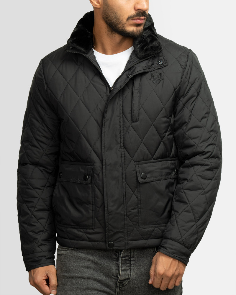 کاپشن مردانه، دارای خز در قسمت یقه (قابلیت جدا شدن دارد) دارای دو جیب کناری و یک جیب روی سینه و دو جیب داخلی